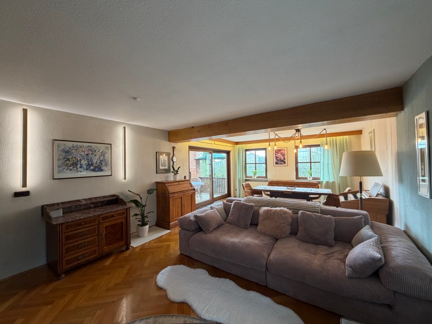 Ein großes, lichtdurchflutetes Wohnzimmer lädt zum Verweilen ein – ob nach einem Ausflug oder an ruhigen Abenden.